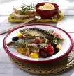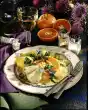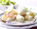 Carve the giltheads diagonally on both sides with a sharp knife and place them on an oiled baking tray. Clean and halve the garlic bulb. Place on the baking tray with the onion. Drizzle fish with oil. Bake in a preheated oven (electric cooker: 200 °C/ convection oven: 175 °C/ gas: level 3) for approx. 25 minutes. Sprinkle the remaining herbs over the fish approx. 5 minutes before the end of the baking time