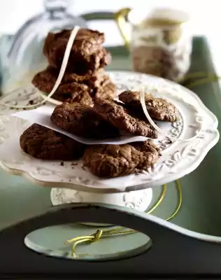Chop 75 g dark chocolate, melt in a hot water bath and let it cool down for about 5 minutes. Coarsely chop 50 g dark and 50 g milk chocolate. Line two baking trays with baking paper. Preheat the oven (electric cooker: 175 °C/circulating air: 150 °C/gas: see