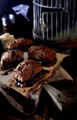 Cut scones in half horizontally. Spread the undersides with approx. 2 tbsp. chocolate-nut-cream each, place the topsides on top. Use the rest of the chocolate-nut-cream for other purposes.