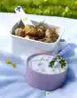 Puree peaches for the dips. Mix with chilli sauce and honey. Chop the pineapple finely, wash the coriander, chop it too and stir into the sauce. Clean and wash spring onions, cut into fine rings. Mix with ketchup, season with curry. Grill the skewers for about 8 minutes while turning. Add sauces extra