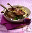 Wash the duck and pat dry. Remove the tusks and fat glands. Season duck inside and outside with salt and pepper. Heat 2 tablespoons of jam, put it into the duck and pin it with wooden sticks. Cross the wings on the fuselage, tie the legs together. Cut onions into quarters, place them on a fat pan with offal from the duck. Pour on 1/4 litre of water.