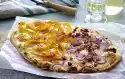 Spread the mushroom mixture on the tart and pour the pumpkin mixture over it. Bake in the preheated oven (electric cooker: 175 °C/ convection oven: 150 °C/ gas: see manufacturer) for 25-30 minutes.