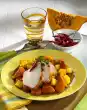 Sauté the ginger in the frying fat and deglaze with lemon juice. Stir in chilli sauce. Steam prepared vegetables briefly in it. Fold in mango. Cut duck breast into fine slices and arrange on plates with the vegetables.