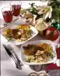 In the meantime, clean and wash the broccoli and divide into small florets. Cook in boiling salted water for about 8 minutes. Roast the almonds in hot fat until golden brown. Drain broccoli and toss in. Remove duck breasts and keep warm. Degrease roast stock, deglaze with orange juice and stock. Season with salt, pepper and sugar. Let simmer for about 5 minutes. Refine with 50 g cream. Arrange potato gratin, broccoli, duck breasts and sauce. Garnish with orange and thyme