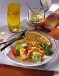 Heat the fat in a pot and fry the onions until transparent. Add red cabbage and apple compote and simmer for 5-10 minutes, stirring occasionally. Season to taste with salt and pepper. Remove duck breast from the stew stock and wrap in aluminium foil. Stir the sauce thickener into the stock and bring to the boil again briefly. Cut the duck breast into slices and arrange on plates with the sauce, red cabbage and hash browns. Serve garnished with parsley