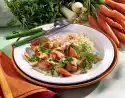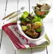 Sprinkle with lemon juice. Let apple juice, chicken stock and apple pieces boil down for about 10 minutes. Season to taste with salt, pepper, cinnamon and sugar. Stir cornflour and some water until smooth and add to the sauce. Bring to the boil again. Serve everything garnished with apple slices, cinnamon sticks and chopped parsley. Boiled potatoes taste good with it