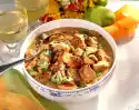 Clean the savoy cabbage, quarter it and cut out the stalk. Cut the savoy cabbage quarters into strips and wash. Heat butter in a pot. Sauté the savoy cabbage in it while turning. Season the savoy cabbage with salt, pepper and nutmeg. Add cream and stock and bring everything to the boil while stirring. Braise the savoy cabbage over a low heat for about 20 minutes. Wash the fillets, dab dry. Cut the skin side diamond-shaped. Fry the fillets in a pan without fat on the skin side for about 10 minutes at medium heat until crispy. Turn and fry for 5-8 minutes. Season with salt and pepper. Season the savoy cabbage to taste again. Remove the fillets, let them rest for a short time and cut them into slices. Arrange savoy cabbage and fillet and garnish. Roast potatoes taste good with it