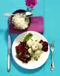 Quench the potatoes, peel them and let them cool down. Clean and wash the sprouts and broccoli. Cut broccoli into florets. Peel and finely chop the onion.