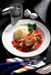 Stir in jelly, bring to the boil, stir in sauce thickener and bring to the boil again. Season to taste with salt, pepper and sugar. Cut open duck breast. Put two orange slices on each plate. Arrange vegetables, duck breast and some sauce on top. Serve garnished with oregano and pepper pancakes