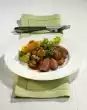 Heat 25 g butter in a large frying pan, add the spaetzle, heat while turning and sprinkle with hazelnuts. If necessary, reheat quinces again. Remove the meat from the foil, cut into slices, arrange with spaetzle and quince vegetables. Dip the salad bouquets in the vinaigrette and serve as well. Mix the rest of the lamb's lettuce, onion rings and vinaigrette and add