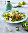 Wash the lime leaves and cut into fine strips. Wash the herbs, shake dry, pluck and chop coarsely. Peel, halve and seed lychees if necessary. Mix prepared salad ingredients with peanuts and 2⁄3 of the coconut chips.