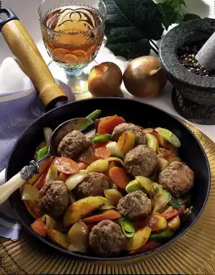 Clean, wash and chop the spring onions. Add the potatoes, carrots and spring onions to the pan and fry for another 10 minutes, turning. Season to taste with salt, pepper and nutmeg. Serve the minced dumpling pan sprinkled with the remaining parsley.
