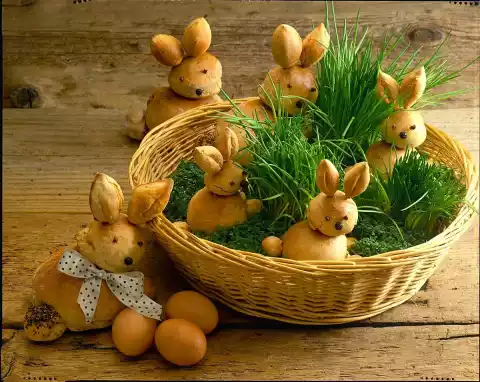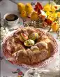 Bake in the preheated oven (electric oven: 200 °C/ gas: level 3) for 30-35 minutes. Let the wreath cool down. Decorate on Easter grass and cake doily with eggs and feathers. Makes about 10 pieces.