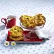 Bring milk, 125 ml water, fat and salt to the boil in a saucepan. Add the flour at once and stir with a mixing spoon until the dough separates as a lump from the bottom of the pot. Put the dough into a mixing bowl and immediately stir in an egg. Then let the dough cool down for about 10 minutes. Stir in 3 eggs individually. Let the dough rest for about 30 minutes.