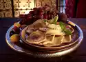 Leave in the preheated oven (electric cooker: 100 °C/ circulating air: 75 °C/ gas: unsuitable) for about 1 1/2 hours. Then sprinkle with freshly ground pepper and serve with the fruits as desired