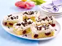 Whip the cream until stiff. Stir quark, 4 tablespoons liqueur, sugar and vanilla sugar until smooth. fold in cream