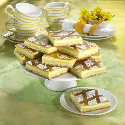 Stir 150 g room-warm butter and 150 g sugar until the sugar has dissolved. Separate 6 eggs. Alternately stir the cooled pudding, egg yolk, salt and half of the lemon peel into the butter mixture. Beat the egg white until stiff and fold in. Roll out the yeast dough on a lightly floured work surface (32 x 39 cm). Grease the fat pan of the oven (32 x 39 cm) and dust with flour. Place the dough plate in the pan, press down lightly on the edges, cover and leave to rise for another 15 minutes. Spread the quark mixture on top and smooth it down. Spread egg foam mixture on top. Bake in the preheated oven (electric cooker: 200 °C/ convection oven: 175 °C/ gas: level 3) for approx. 50 minutes. Coat aluminium foil with oil and cover the cake after about 20 minutes