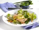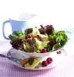Boil the eggs hard for about 10 minutes. Clean and wash the iceberg lettuce and, except for a few leaves for garnishing, cut into strips. Wash cucumber and cut into small cubes. Quench eggs, peel and cut into pieces. Mix yoghurt and sour cream. Season with salt, pepper, sugar and lemon juice.