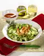 Wash and chop the dill and stir into the sauce, except for something to sprinkle. Put the prawns on a sieve and rinse briefly, drain. Mix eggs, iceberg lettuce, cucumber, crabs and salad dressing. Arrange egg salad with lettuce leaves in a bowl. Sprinkle with remaining dill and a little caviar. Add remaining caviar