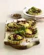 6 Grease the hollows (including the edge) of a muffin tray well. Place the toast strips crosswise with the butter side into the moulds and press them down. Pre-bake in the preheated oven (electric cooker: 200 °C/ convection oven: 175 °C/ gas: level 3) for 3-4 minutes.