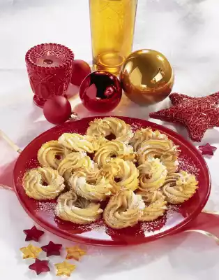 Roughly grate the marzipan. Mix the egg yolk, lemon peel, cinnamon and salt with the dough hooks of the hand mixer until smooth. Pour into a piping bag with a large star-shaped spout. Line 1-2 baking trays with baking paper and spray on approx. 20 squiggles (approx. 5 cm Ø). Bake the trays one after the other in a preheated oven (electric cooker: 200 °C/ convection oven: 175 °C/ gas: level 3) for approx. 4 minutes.