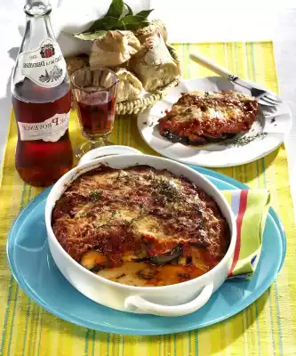 Clean and wash the aubergines and cut them into slices about 1 cm thick. Heat 2 tablespoons of oil in a pan. Fry the aubergines in the pan in portions, turning them golden brown. Gradually add 4 tablespoons of oil. Line a baking tray with kitchen roll. Place the fried eggplants on top to drain. Prick aubergines several times with a fork and cover with a second layer of kitchen paper.