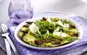 Season with salt, pepper and a little nutmeg. Arrange everything, sprinkle with rocket and garnish.