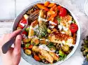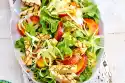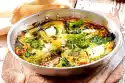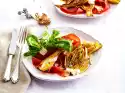 Beat 1 egg in each mushroom, season. Wash the tomatoes, cut them into quarters, spread around the mushrooms, season. Bake for about 10 minutes more. Wash the arugula, if necessary pluck smaller, sprinkle over it.