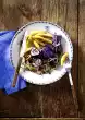 Roll up meat, tie up. Pour 2 tablespoons of juniper brandy over it. Crush juniper berries. Rub roast with juniper, marjoram, salt and pepper. Place in a roasting pan. Heat fat, pour over and fry on all sides. Chop the onions and sauté.