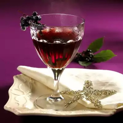 Finely chop the ginger plums. Divide into 4 glasses and pour 1 tablespoon of ginger syrup over each. Pour on the punch. Wash the elderberries, drain a little and roll in sugar. Decorate glasses with it.