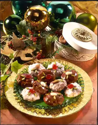In the meantime, halve the almonds and the cherries. Quarter the pistachios. Mix icing sugar and 2-3 tablespoons of hot water. Place the finished Elisen gingerbread on a cake rack. Spread half of the Elisenlebkuchen while still warm with icing and decorate with cherries, almonds and pistachios as desired.