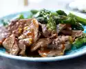 Wash parsley, shake dry and chop. Cut the meat into thin slices. Serve with onions and dip, sprinkle with parsley. Eat Patatas bravas with it.