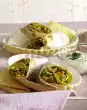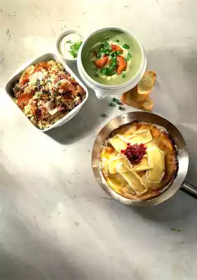 Stir in cream, add remaining peas and cook for another 5 minutes. Season to taste with cognac, salt and pepper. Cut salmon into pieces and pour over the soup with the chervil leaves.