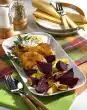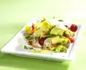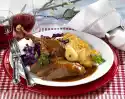 Season the meat and take it out. Deglaze the meat with marinade, bring to the boil. Remove the pan from the heat, beat butter in pieces under the sauce. Season to taste, arrange everything. Served with: baguette and salad