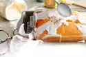 Take out the sponge cake. Turn onto a sugared tea towel immediately. Remove the baking paper. Roll up the sponge cake. Let the sponge roll cool down.