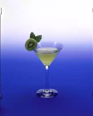 Pour the kiwi liqueur and Orange Bitter into a glass. Top up with chilled sparkling wine. Decorate with kiwi liqueur and lemon balm.