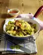 Wash the meat, dab dry and cut into narrow strips. Put the meat strips on wooden skewers in a wavy shape. Season with salt and pepper. Heat 1 tablespoon of oil in a frying pan. Brown the meat skewers in it for about 3 minutes