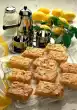 Soak the grated coconut in milk for 20-30 minutes. Then place on a sieve and drain. Separate the eggs. Beat egg whites and 2 tablespoons of water until stiff. Gradually add the sugar, then stir in the egg yolks. Mix flour, starch and baking powder and sieve onto the egg whites. Add grated coconut and lemon peel. Fold loosely into the dough.