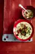 Wash the tomatoes, cut them in half. Clean the mushrooms, if necessary wash and halve them. Clean spring onions, wash and cut into rings.