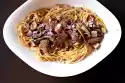Dab meat dry and cut into thick pieces. Heat the oil in a flat frying pan. Brown the meat thoroughly all around. Fry mushrooms and spring onions, season with salt and pepper. Add tomatoes, cream, 1⁄8 l water and stock.