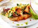 Rinse the fish, pat dry, place on 4 large pieces of aluminium foil or parchment paper. Season with pepper. Spread vegetables over it. Fold the foil into packages. Bake in a hot oven for about 15 minutes.