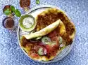 1⁄2 Add a teaspoonful of salt and 2 tablespoons of oil. Knead with the dough hooks of the mixer for about 5 minutes, then with floured hands for 5-10 minutes to a smooth dough. Form the dough into a ball and let it rise in the bowl covered in a warm place for about 45 minutes.