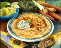 Finely mash the chickpeas, onion, garlic and the remaining parsley. Mix with egg yolk, breadcrumbs and flour and season with salt, cumin and chilli powder. Form about 20 small balls from the mixture.