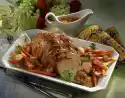 Remove the chicken. Drain the broccoli. Mix with stock and vegetables from the tray, season to taste. Serve with the chicken and lemon slices. Roast potatoes taste good with it. Drink tip: beer, e.g.