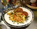 Preparation: Wash the potatoes, boil them covered with water and cook for about 20 minutes. Drain potatoes, rinse, peel and cut into thick slices. Peel onions and cut into slices.