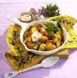 Whisk 3 eggs twice and season with salt and pepper. Pour the eggs over the potatoes. Shortly before the mixture sticks, carefully push them together with a spatula. Allow to set to the end and turn out of the pan onto a plate.