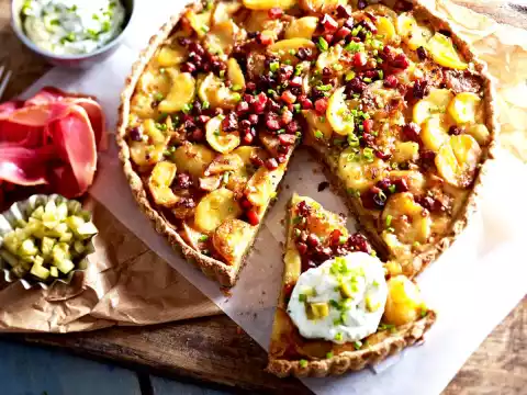 Sour cream, gherkins and smoked ham taste good with it.