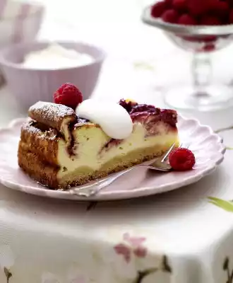 Remove from the edge with a knife and leave to cool in the mould for about 4 hours. Dust with icing sugar and decorate with raspberries. Whipped cream tastes good with it.