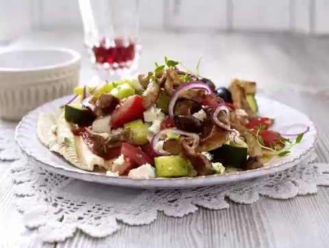 Fill with gyros and salad or serve with it. Add the pepperoni.
