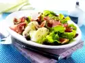 For the salad, wash the tomatoes and cucumber, dice coarsely. Peel red onion and cut into thin rings. Crumble the feta.